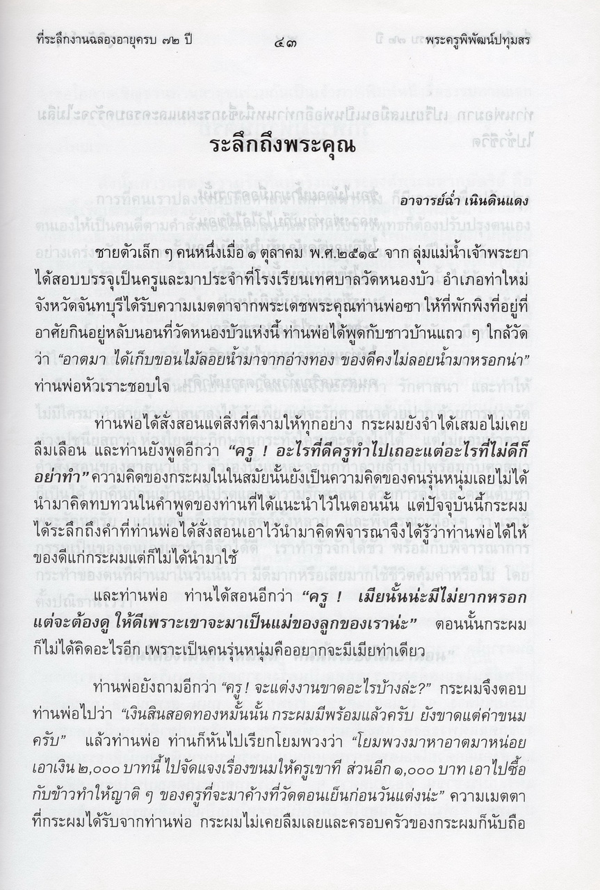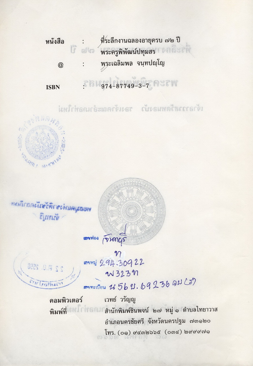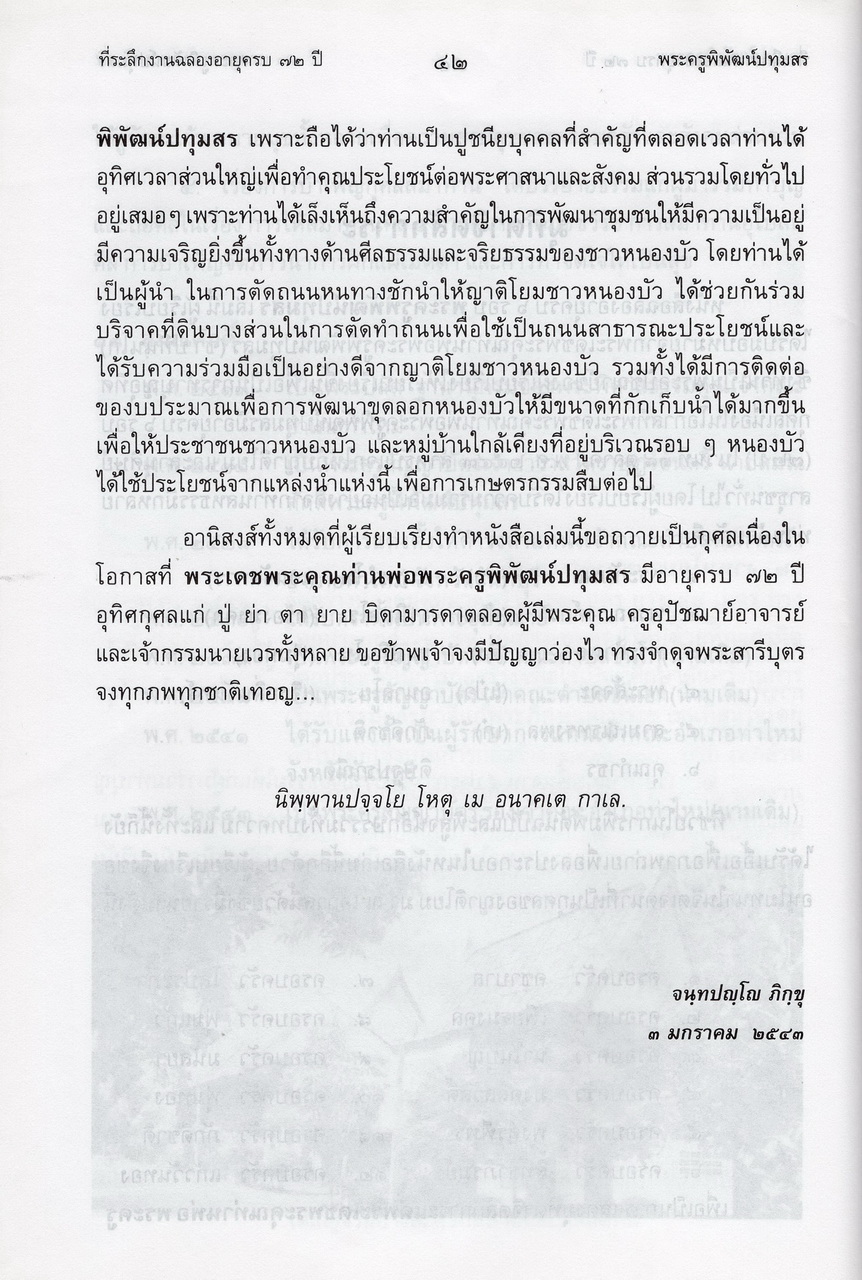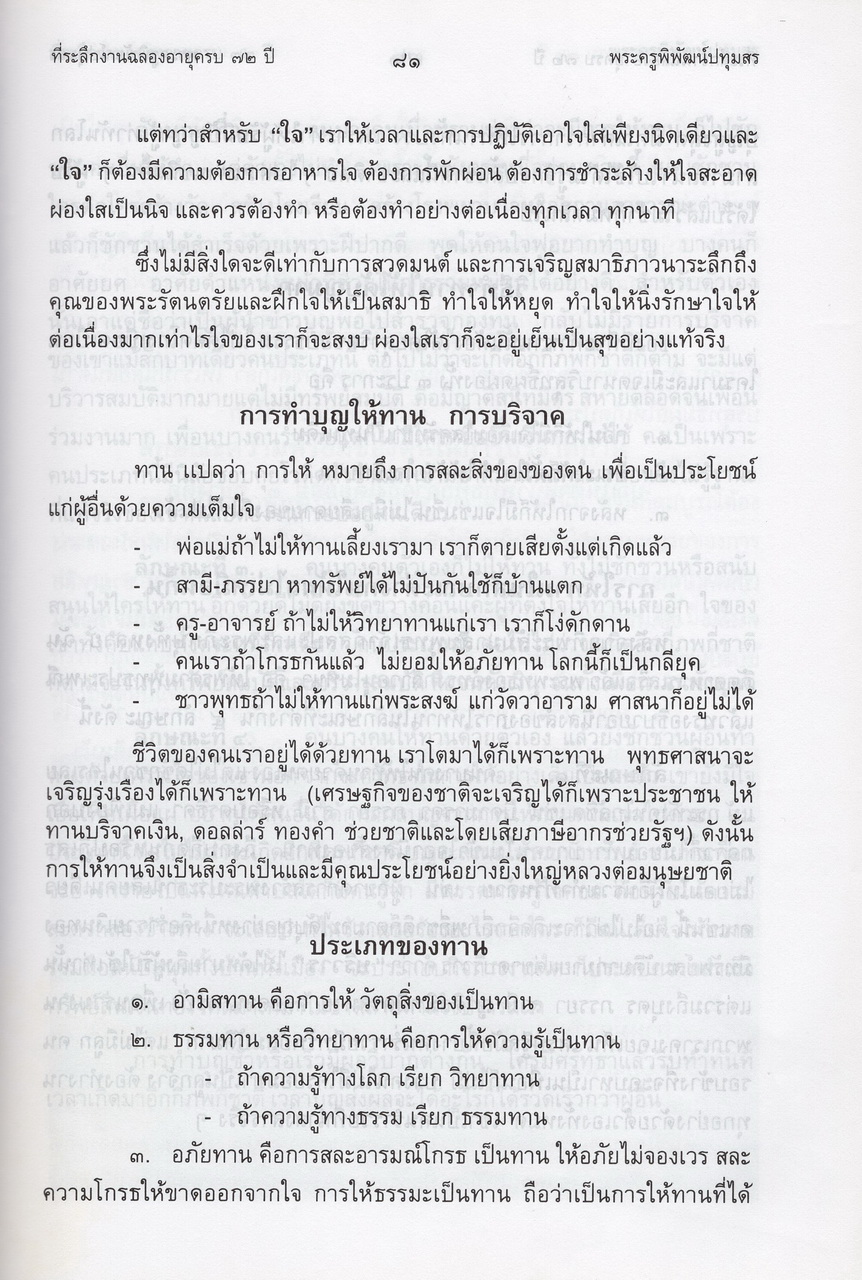 - ที่ระลึกงานฉลองอายุครบ 72 ปี พระครูพิพัฒน์ปทุมสร