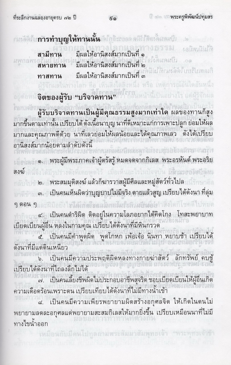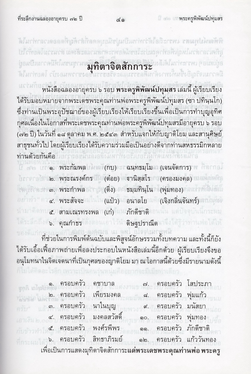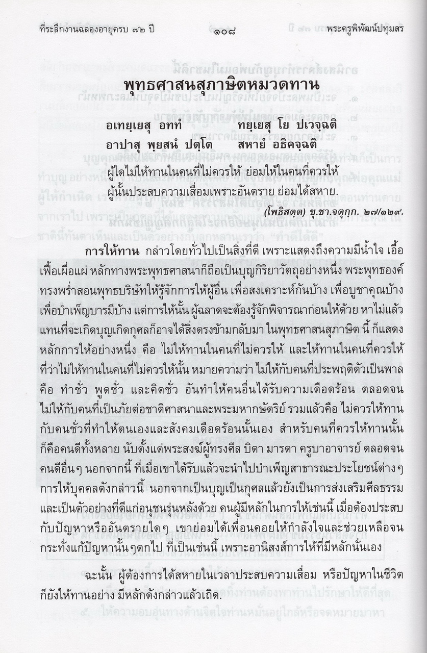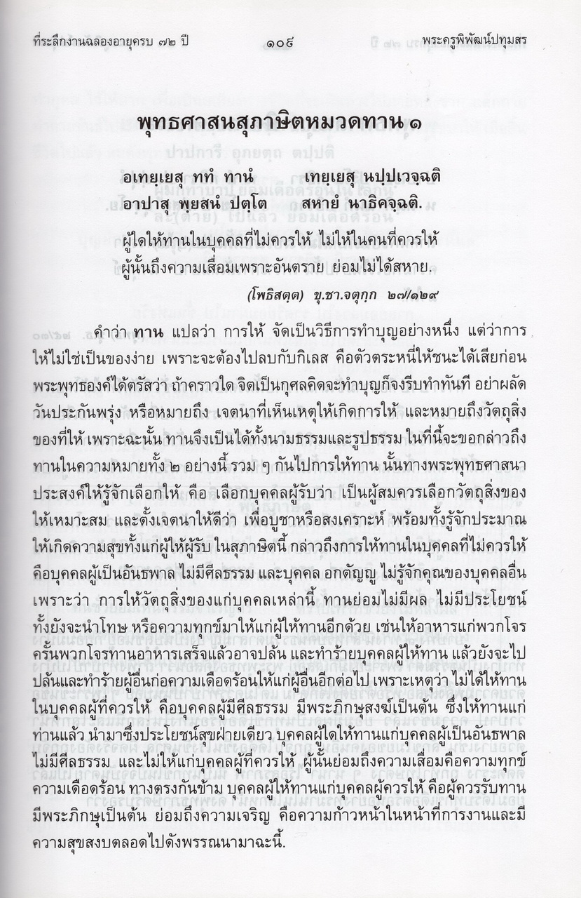 - ที่ระลึกงานฉลองอายุครบ 72 ปี พระครูพิพัฒน์ปทุมสร