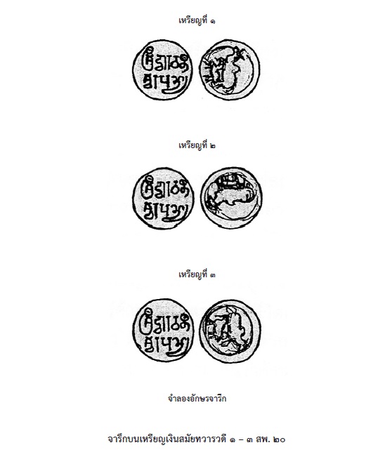 - จารึกเหรียญเงินสมัยทวารวดี ๑ – ๓
