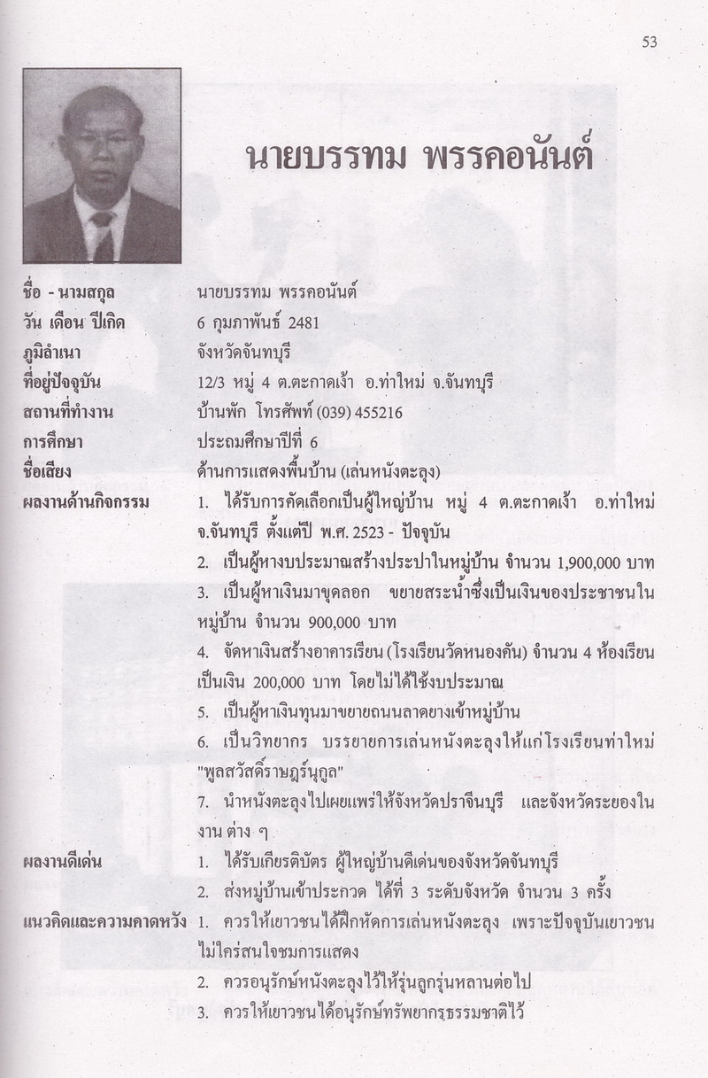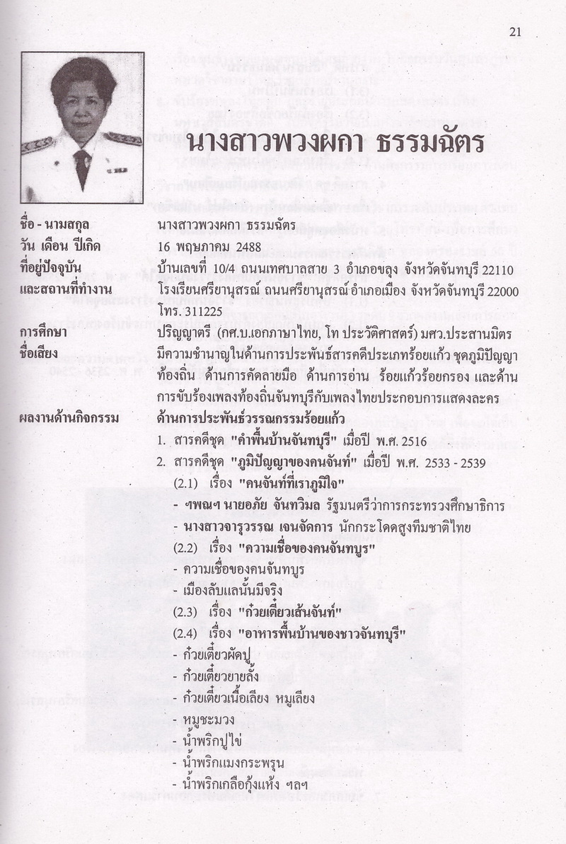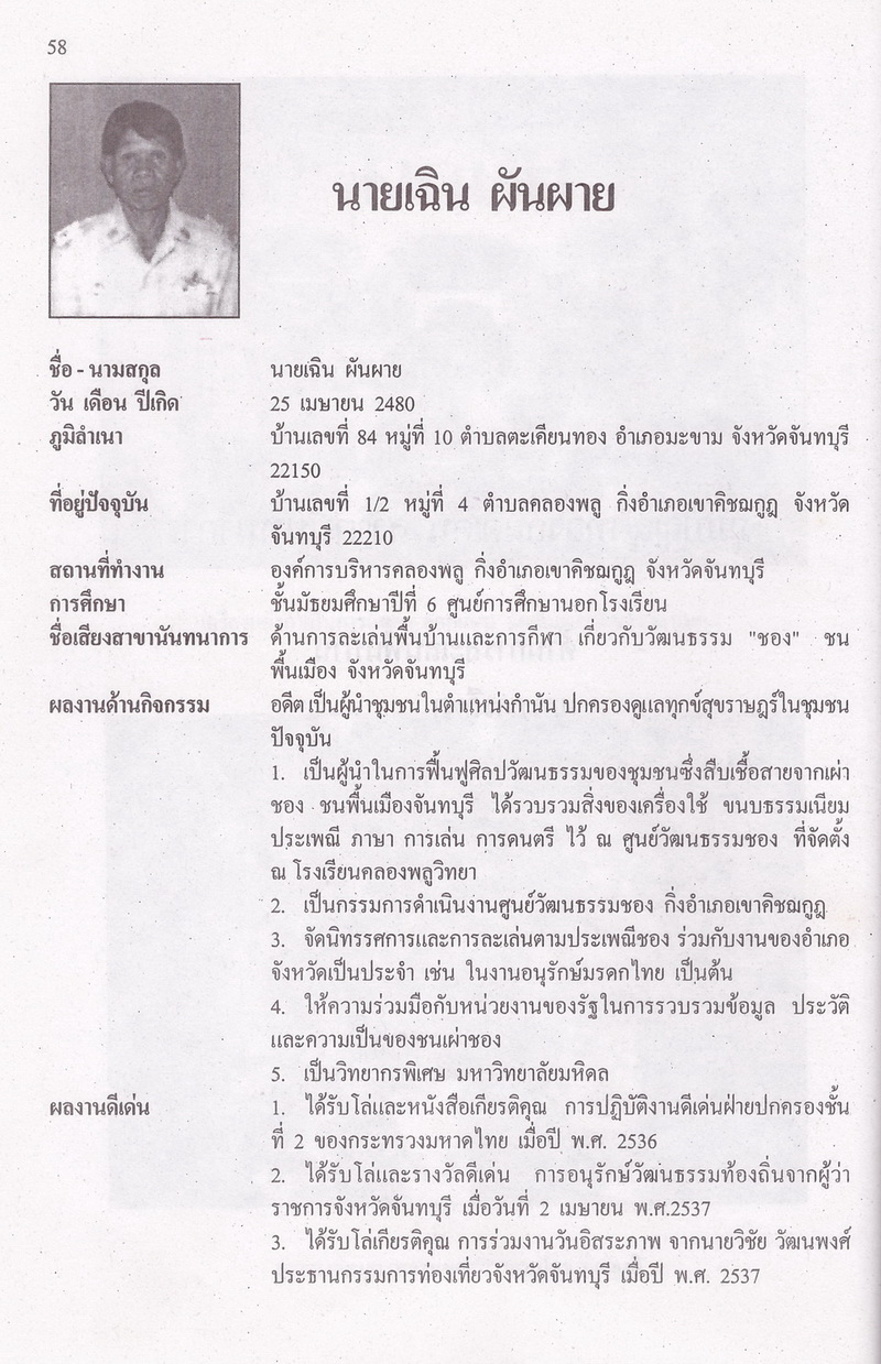 สภาวัฒนธรรมจังหวัดจันทบุรี, “ภูมิปัญญาท้องถิ่นดีเด่น : โครงการส่งเสริมและอนุรักษ์ภูมิปัญญาไทยและวัฒนธรรมพื้นบ้านจังหวัดจันทบุรี,” D-Library | National Library of Thailand, accessed April 2, 2026, http://164.115.27.97/digital2024/items/show/7393.