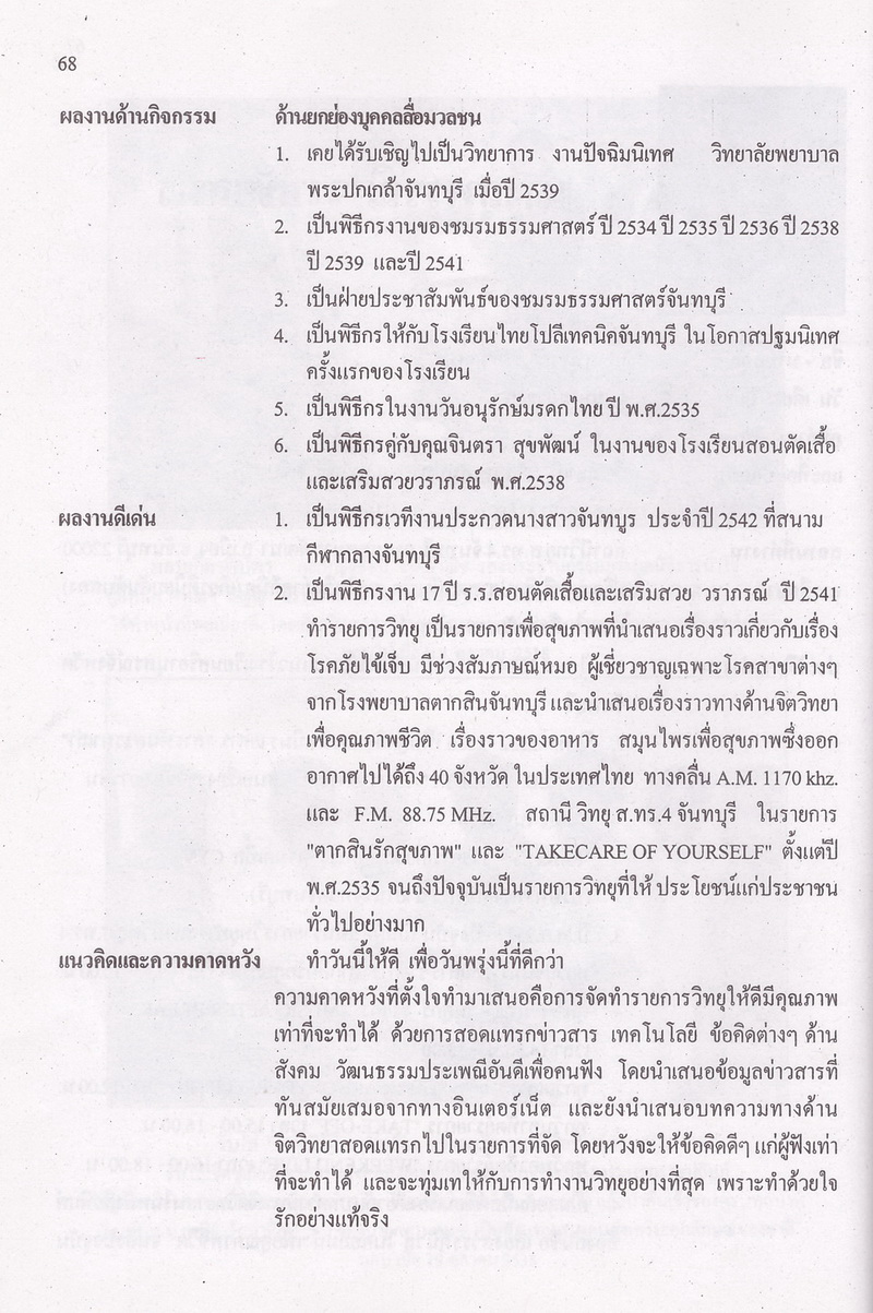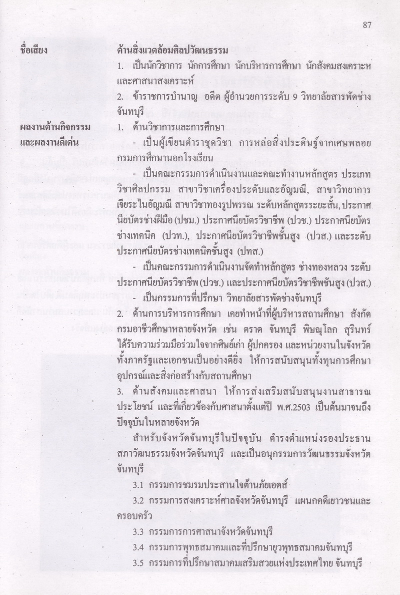 - ให้ข้อมูลในเรื่องภูมิปัญญาไทยในจันทบูร และภูมิปัญญาไทยท้องถิ่นดีเด่นในสาขาต่างๆ ได้แก่ สาขาทัศนศิลป์ วรรณศิลป์ ศิลปและการแสดง นันทนาการ สื่อสารมวลชน ภูมิปัญญาชาวบ้าน โดยแต่ละสาขาก็แบ่งย่อยออกเป็นต้น สำหรับผู้ที่ได้รับเป็นเป็นภูมิปัญญาท้องถิ่นดีเด่นในแต่ละด้านจะให้ข้อมูลรายละเอียดในเรื่่องชื่อ-นามสกุล วันเดือนปีเกิด ภูมิลำเนา ที่อยู่ปัจจุบัน สถานที่ทำงาน การศึกษา ชื่อเสียง ผลงานด้านกิจกรรม ผลงานดีเด่น แนวคิดและความคาดหวัง