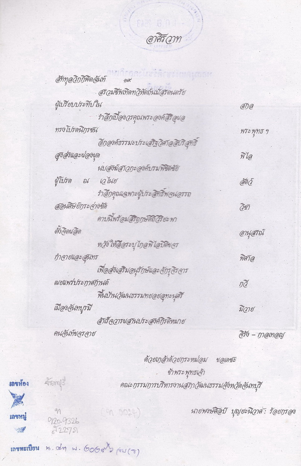 - ต้นฉบับอยู่ที่หอสมุดแห่งชาติรัชมังคลาภิเษก จันทบุรี