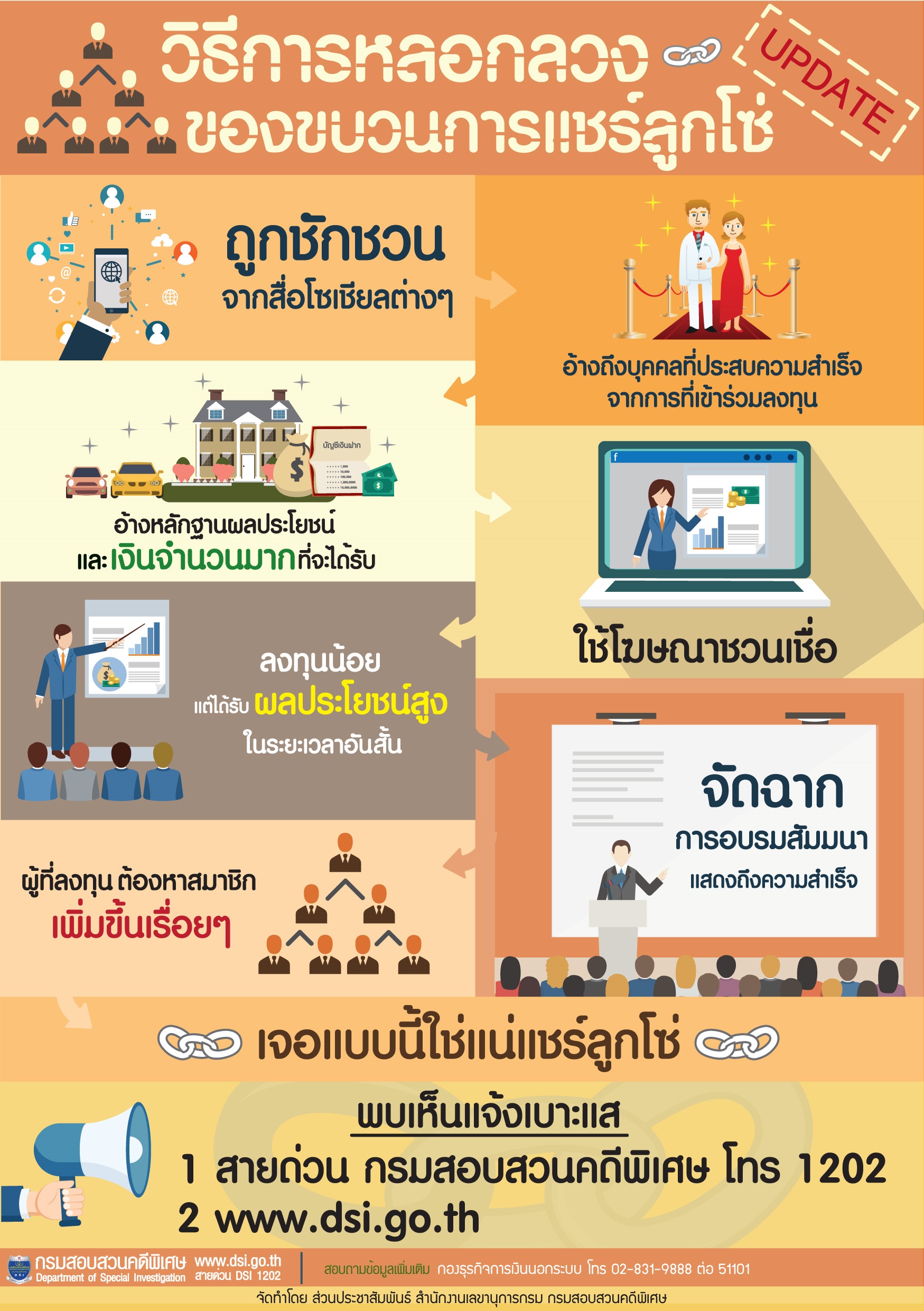 สำนักงานเลขานุการกรม กรมสอบสวนคดีพิเศษ, “วิธีการหลอกหลวงของขบวนการแช์ลูกโซ่,” D-Library | National Library of Thailand, accessed April 2, 2026, http://164.115.27.97/digital2024/items/show/8962.